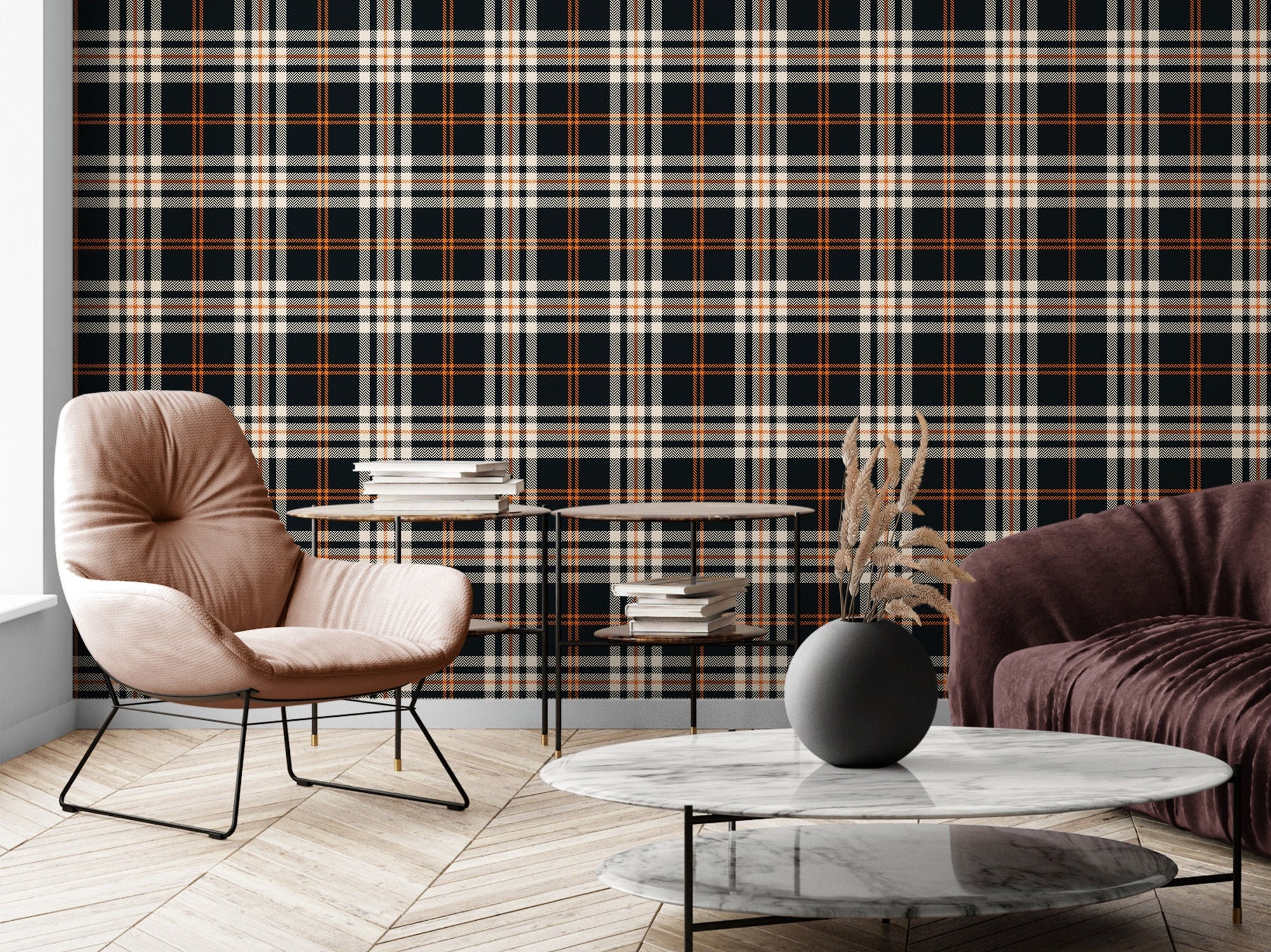 Dark Wall Paper Plaid Wallpaper Geometric Wall Paper Peel Etsy